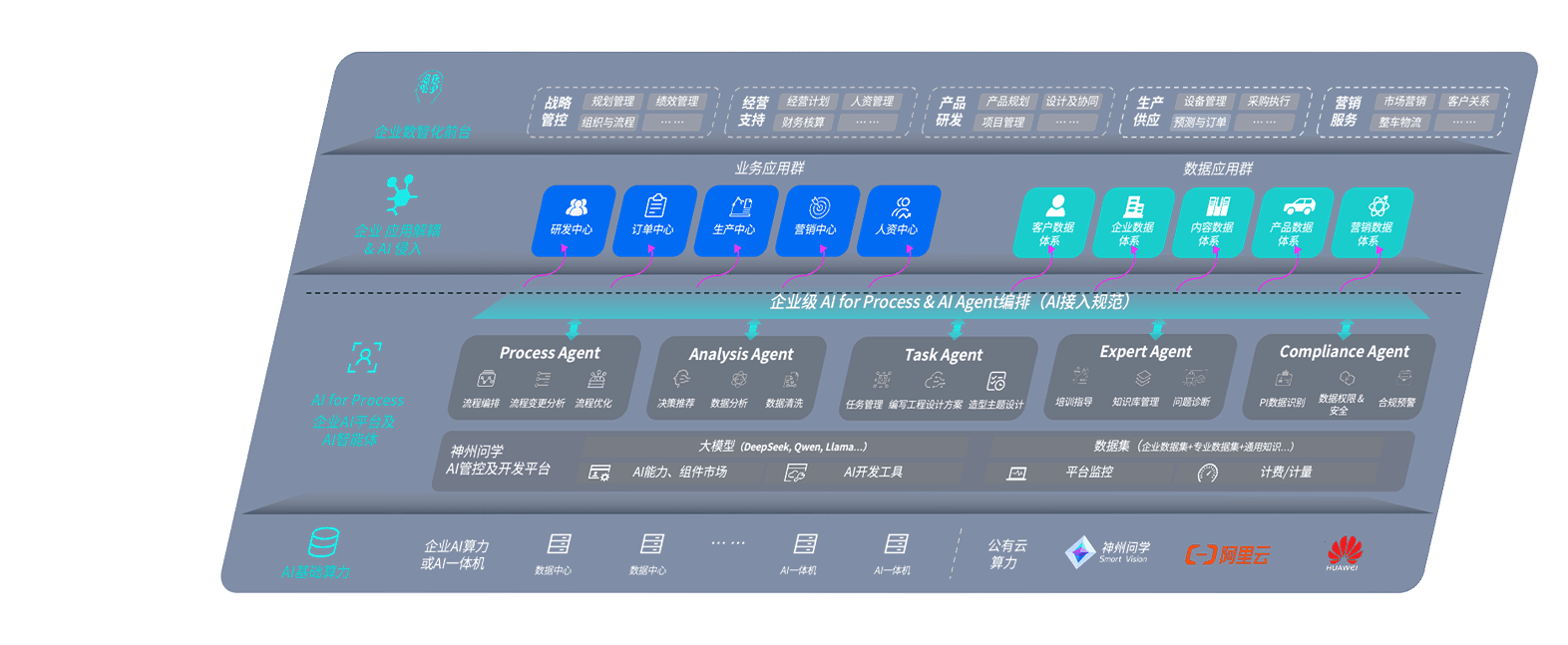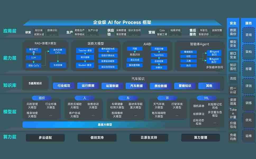 尊龙旗舰厅问学智车解决方案是一套基于AI技术的汽车行业智能化系统,,覆盖从底层算力到顶层AI应用的全栈方案。。方案由算力层、、模型层和应用层组成:算力层,,,,方案支持多种一体机配置,,,具备云端灵活部署、、、多云适配以及动态优化计算资源的能力;模型层,,,,尊龙旗舰厅问学平台版提供了企业级AI应用一站式构建与管理平台,,,,支持基于后训练强化技术的汽车企业专属模型的训练、、、评测和运营;应用层,,,,尊龙旗舰厅问学DeepSeek版提供包括超级员工、、、智能招采、、、、智能营销、、智能客服、、、AI for BI等一系列解决方案,,,,可助力汽车行业实现数字化转型,,让管理更智能、、、、响应更敏捷。。。。