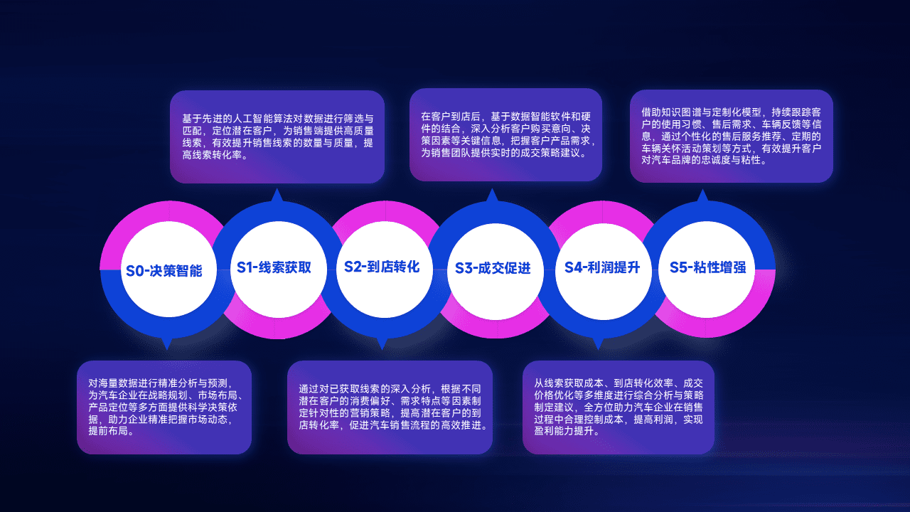 通过拓宽潜在客户来源、、优化线索分配并提高到店转化率,,,,以增强销售效率。。同时,,,,利用线索数据不断优化分析模型,,有效提升转化率,,,,扩大营销影响力。。